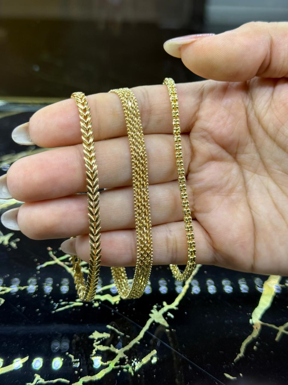 Amplia variedad de anillos, cadenas, manillas y más en oro 18k de la mejor calidad.